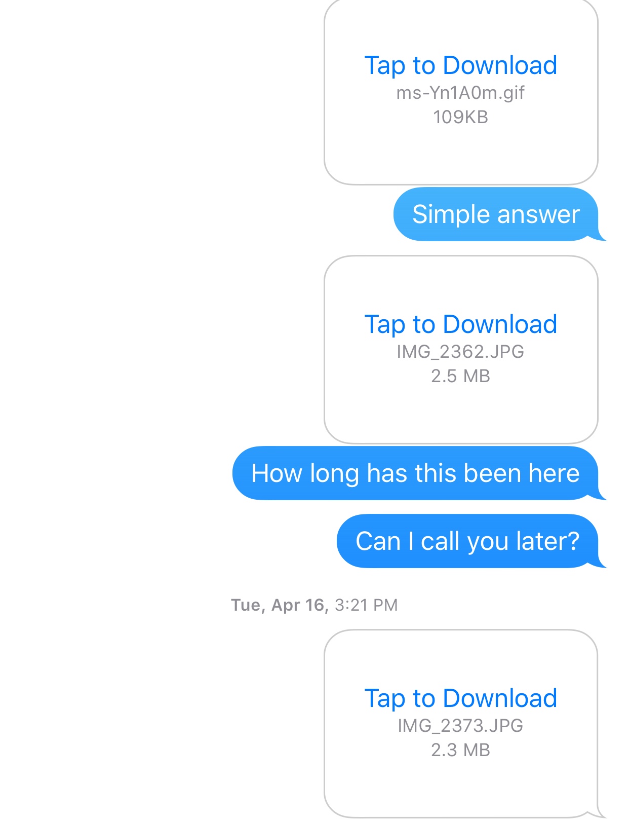 0 Recommended Answers 0 Replies 12 Upvotes. On some of my old messages a day or so ago my photos I sent say tap to download I dont want to have to do this. Now youre all set for the next time youre in a rush.