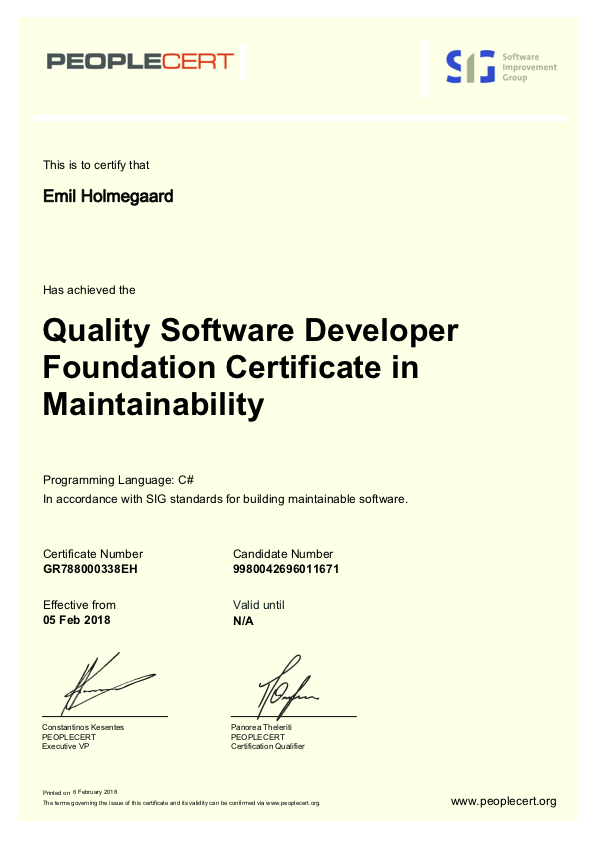 Quality Software Developer Foundation Certificate In Maintainability Eholme Dk